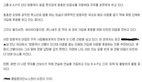 평소에도 후원에 관심이 많았던 b.a.p!