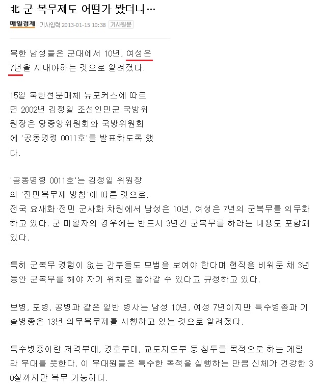 남한 여성은 왜 군복무를 하지 않는것인가?