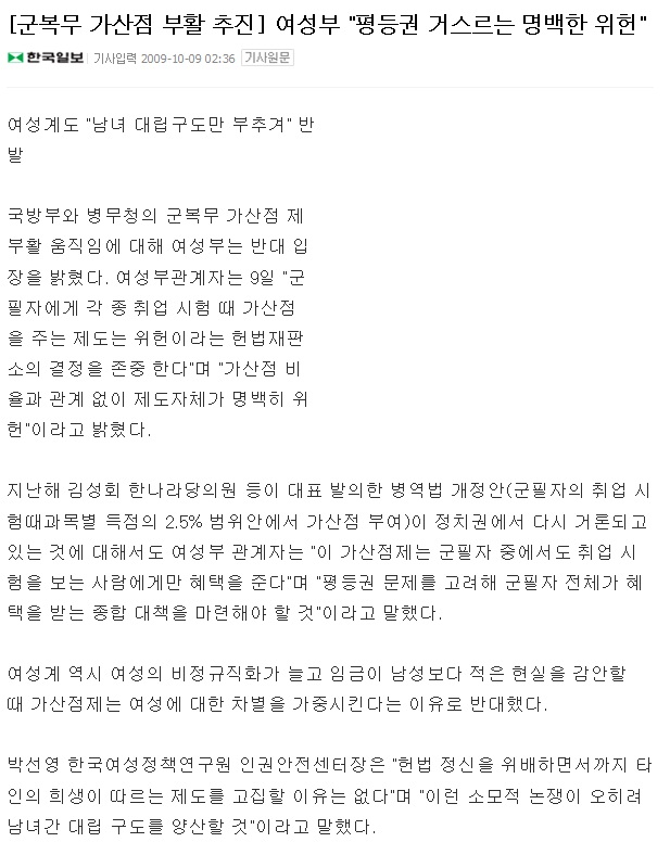 왜 국민의 4대의무중 '국방의 의무'는 여성은 나몰라라 하는가?
