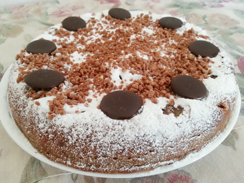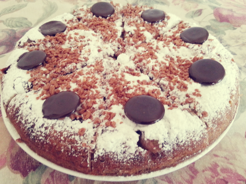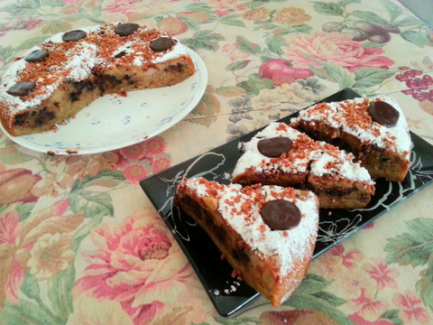 이건 반죽에 초코칩, 시나몬파우더를 넣고 초콜릿, 쿠키크런치, 슈가파우더로 장식한 밥통케이크^^