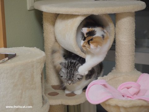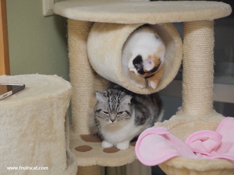 간섭받기 싫어하는 우리 자연고양이 앙즈는 몰래 캣타워에서 쉬려고 했으나..