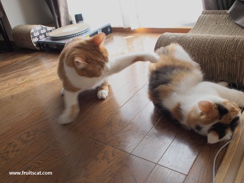 자기랑 이종격투기 하며 놀자는듯.... 주먹을 휘두르지만... 한 번 폭발하면 집사도 안보이는 성질더러운 앙즈는... 무서워서 피하냐...더러워서 피하지라는 처세술로 무시합니다~