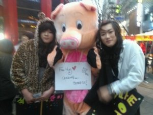 사진도 같이 찍어주고 했음. 글쓴이도 저 돼지군과 프리허그를 했는데...