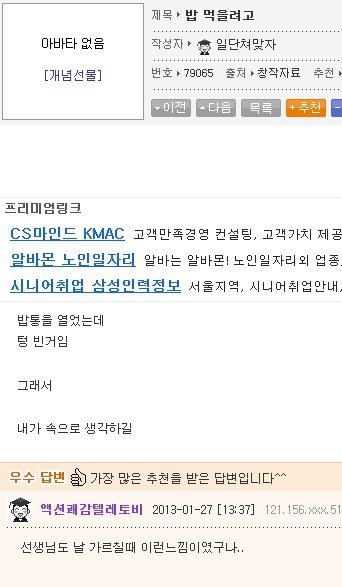 가능하면 식당 알바는 하지마. 사장들이 못되먹은 사람들이 많아.