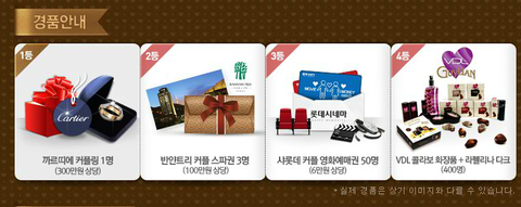 까르띠에 커플링/반얀트리 스파권/샤롯데 영화예매권/길리안 VDL콜라보 화장품 등