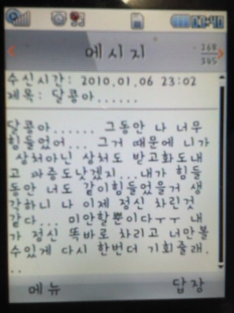 그리고 어느날 저녁 남아에게 장문의 문자가 왔음!!!