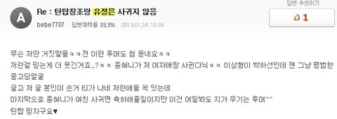 인터넷에 제가 좋아하는 유정은언니를 검색하니까 틴탑창조랑 사겻다 어쩐다 하는글들이 많이 나오더라구여..