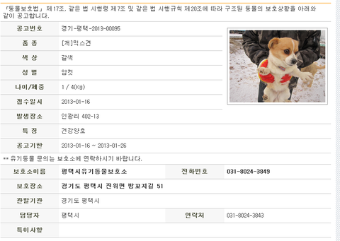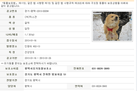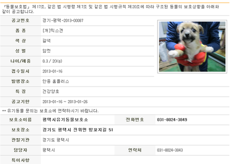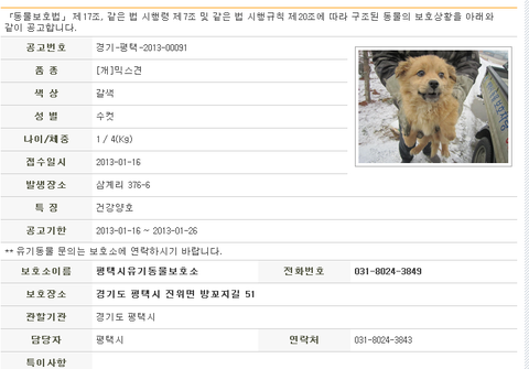 입양이나 임보가능하시면 평택시유기동물보호소 031-8024-3849로 전화하셔서 공고번호00091 알려주시고 바로 데려가시면 됩니다.많은 관심과 사랑부탁드리겠습니다!!!