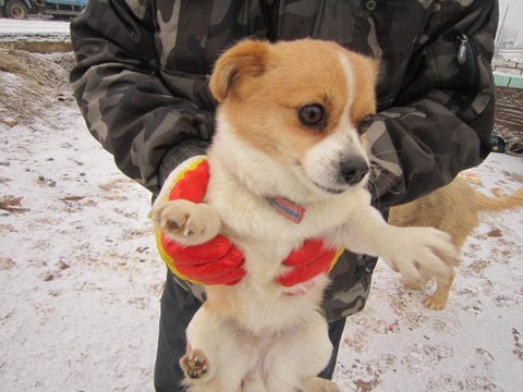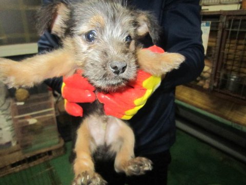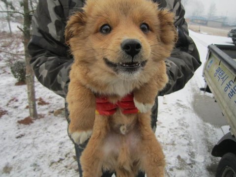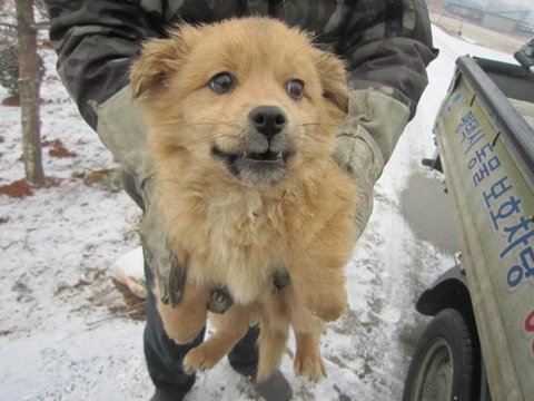 위에 있는 강아지와 같은 장소에서 발견된 믹스견입니다.위 믹스견과 형제인거 같은데 이강아지도 서글피 웃고 있다는 ㅠㅠ