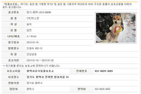 수원에 아는분 잃어버린 강아지찾다 평택까지 동물유기보호시스템으로 찾아보던중 눈에 아른거려