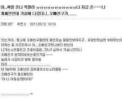 그런데 이런 흔한 뻘글을 굳이 클릭해서 조회수 늘리고 반대 누르고 댓글 달면서 톡선 보내고 북치고 장구치는 거 보니까 판녀들 또 여돌로..