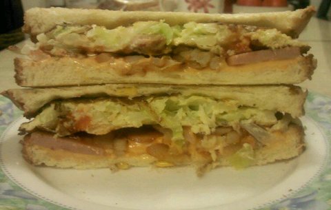 양배추랑 채소랑 썰어서 계란물에 퐁당 넣어서 굽고 햄, 양파, 치즈한장 넣고 토마토 케첩 뿌리고