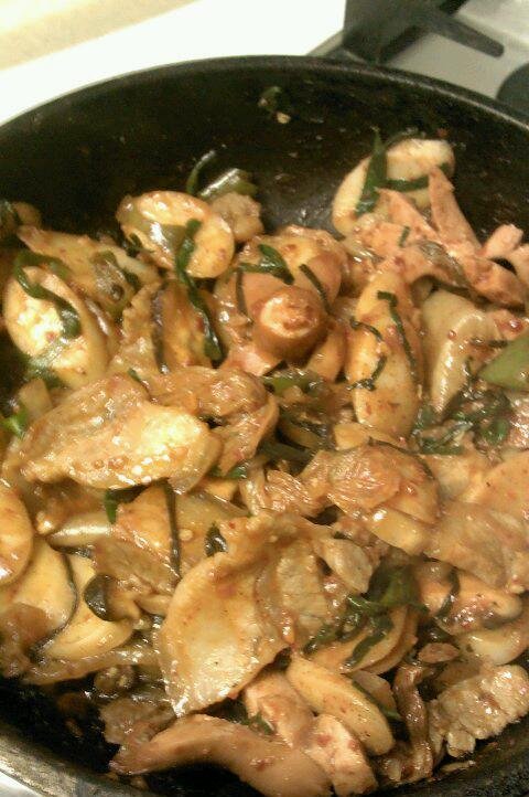 전 양파를 매우매우 좋아하므로 양파 하나 통으로 넣고 양배추, 고추, 버섯, 파를 넣고 훈제오리랑 볶아주다
