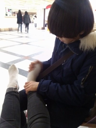 롯데월드 가서 다리 아프다니까 사람많은데 다리 주물러주는 군요.