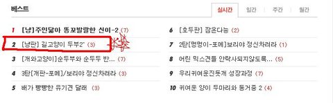 아까 잠깐 들어왔다 일하느라구 지금 인사드리는데 실시간 2위! (춤춰춤춰!)