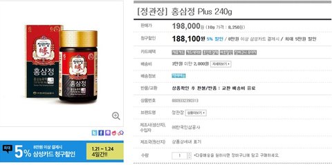 요즘 건강에 관심이 많아지면서 홍삼이 2위로 올라섰네요~