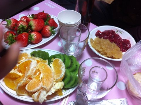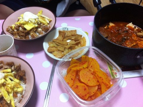 ㅋㅋㅋㅋㅋㅋㅋㅋㅋㅋㅋㅋ저기 위에 소고기랑 마늘 다진거처럼 보이는게 안타깝지만 직접만든 딸기쨈이랑 사과쨈이랍니다................... 보기엔 저래도 맛은 아주 굿이었어요...![]()