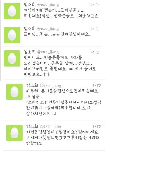 사과문이라고올린거 ㅇㅇ 양요섭보고뭐라하면 무개념소리들을까봐 사과한다함 ㅋㅋ