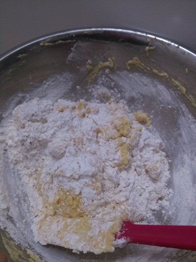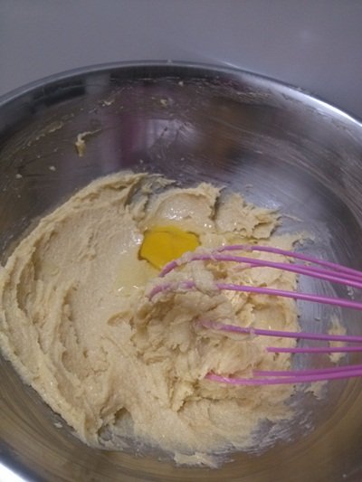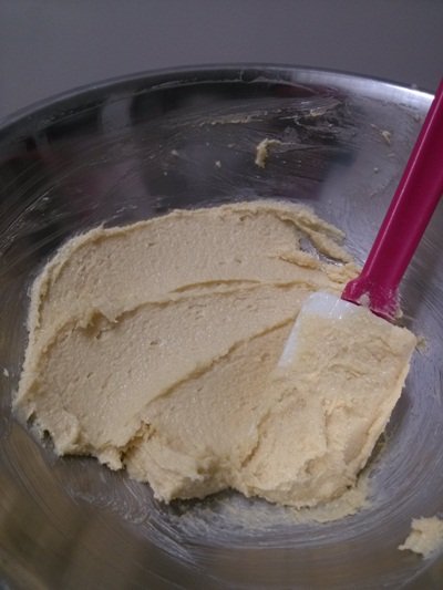 버터반죽에 계란4개를 하나씩 넣고 섞고 또 하나 넣고 섞고 잘 섞어줍니다![]()