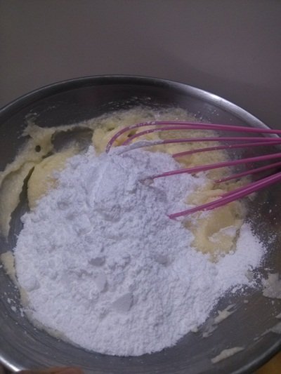 미리 부드럽게 쉑킷해논 버터에 아이싱슈가를 투척!