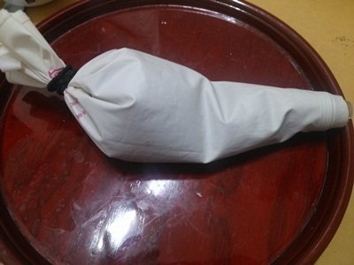 초콜릿이 잔뜩 붇은 유산지는 버리지마시고 작은통에 이렇게 초콜릿을 짜서 담아주어요!