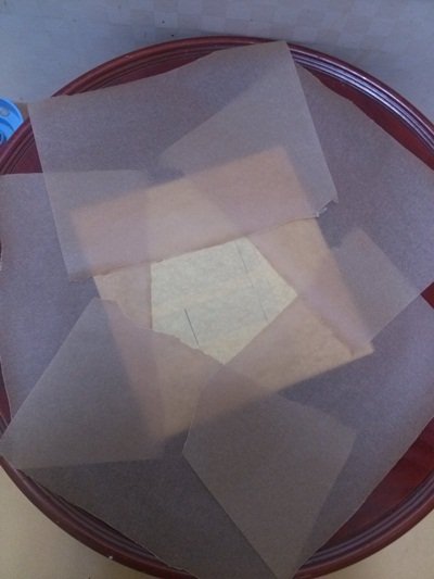 그리고 유산지를 큼직하게 5장 찢어서 사진처럼 케익받침주변에 둘러줍니다!!
