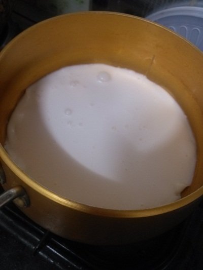 생크림을 냄비에 넣고 부글부글 끓여줍니다!