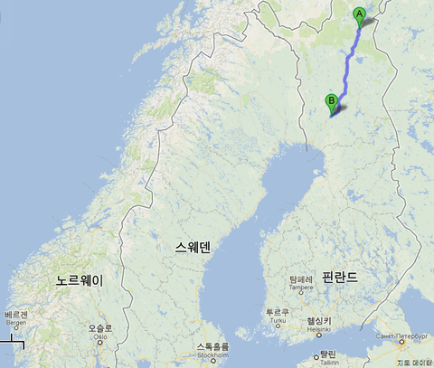 왼쪽아래 Naverniemi라고 쓰여져 있는 곳이 내가 묵었던 숙소가 있는 곳이다. 실제로는 저보다 좀 더 왼쪽으로 들어가야 하고 하회마을 처럼 강에 휘감겨 둘러싸여 있다.