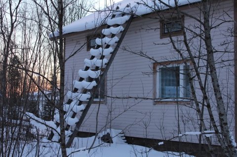 사다리에 쌓인 눈의 모양이 과자 프링글스 캐릭터의 콧수염이 생각나게 했다.