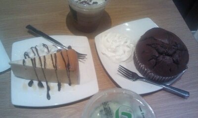 자주 먹는 녹차라떼와 초코 머핀 그리고 치즈케이크를 시켰죠.