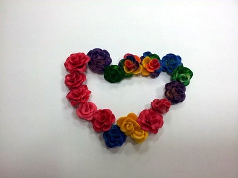 꽃잎 하나하나 만들고 또 붙이고 마지막으로 미니오븐에 일정시간동안 구우면 사진과 같이