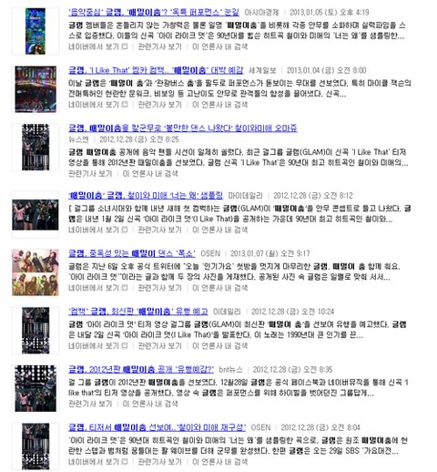 네이버 연관검색어에 글램이랑 글램 때밀이춤까지!!!!!