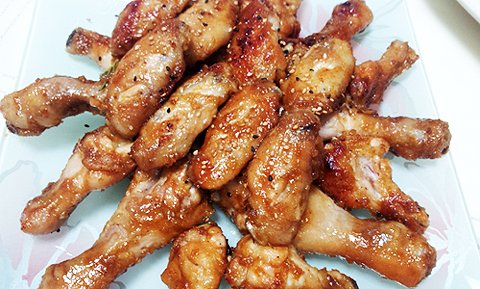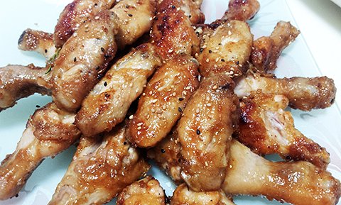밀가루+전분가루 입히고 직접만든 간장소스 발라서 오븐에 1차로 굽고