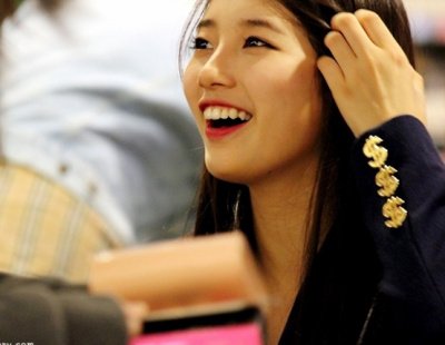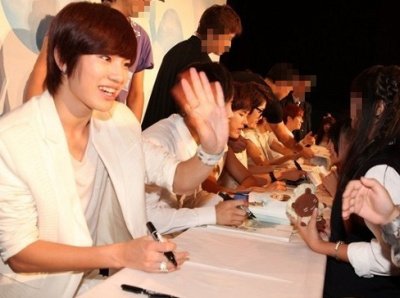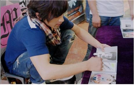 사인회에서 밝게 웃는 아이돌