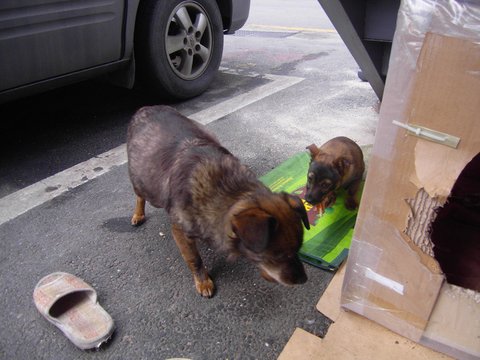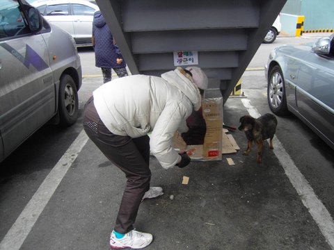 시흥1동 주민센터 옆 공영주차장에서 7년간 노숙하던 어미개와 새끼개