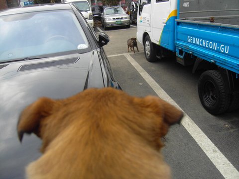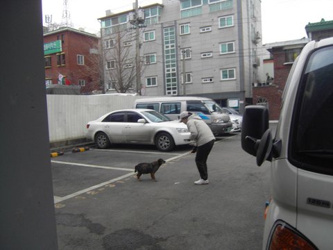 실랑이 끝에 어렵게 달래와 장군이를 잡은 후에 평소 주차장에 있던 이 개를 돌봐주던 한 아주머니와 샤이니님이 동석을 해서 달래와 장군이를 안심시켜주며 뚱아저씨가 운전을 하고 팅커벨 프로젝트 주치병원인 금호동 현대동물병원으로 향했습니다.