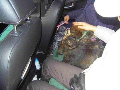 잡히고 나서도 자신의 운명이 어떻게 될 지 모르는 두려움이 있는데다가 차를 처음 타본 장군이와 달래는 토하고 그 자리에서 그냥 변을 보았습니다. 정말 안타까운 강아지들이었습니다.