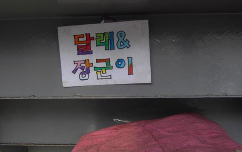 이 사연글을 올리신 샤이니님은 이름도 없이 공영주차장 부근 시장에서 때로는 맘씨좋은 아주머니가 챙겨주는 사료를 먹기도 하고, 때로는 버려진 음식을 주워먹으며 살던 이 어미개에게 '달래'라는 예쁜 이름을, 새끼강아지에게는 '장군이'라는 이름을 지어주고 계단 밑에 틈에 이 개들이 살 집을 마련해주었습니다.