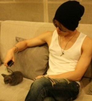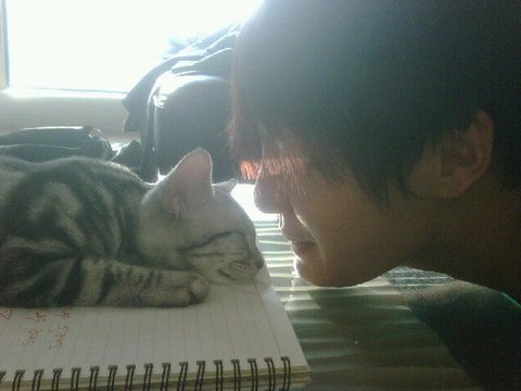 준수는 키우는 고양이도 많고 사진도 많은데 그중에 이게 젤 좋더라~준수 공부 방해하는 티거~!
