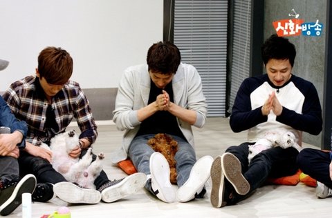 강아지들과 잘못했어요~놀이 하는 신화의 에릭, 민우, 앤디