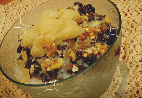 이렇게 찰떡도넣고 냉동실에있던 견과류도 넣고 연유도넣고 내가만든 팥넣어서