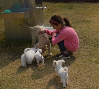왼쪽부터 말티 별.  앵두.  낯선 개.