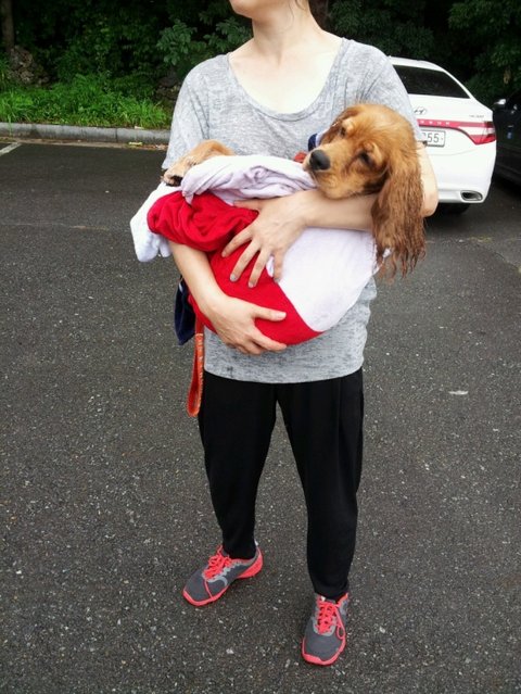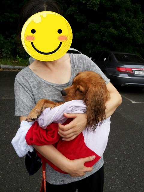 계곡에서 나오는 길이 흙이 많아 엄마가 안고 나왔는데 언제 뛰어놀았냐는듯 아기처럼 폭 안겨있었음
