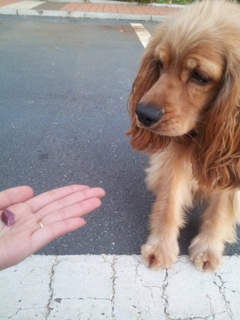 그날도 간식 몇개를 챙겨 나가 당근이에게 앉아 기다려 훈련을 시켰음