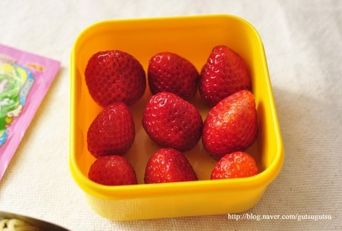 딸기는 씻어서 물기 하나하나 잘 닦아서 넣어야