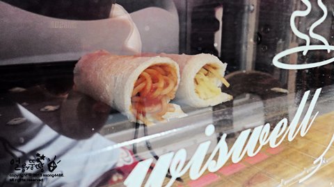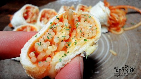 (식빵을 돌돌말게되면 다시 풀릴 확률이 높을것 같아서 가장자리 부분에 치즈를 뿌려주시는게 좋아요)