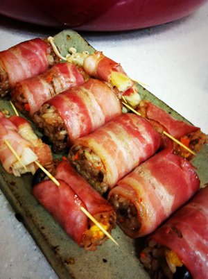 알밥볶은다음 베이컨으로 돌돌말아서 오븐에 넣고 !