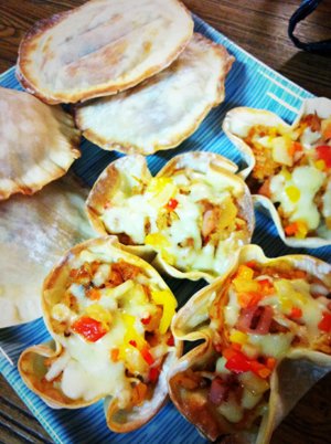 배가 너무 고파서 맥주안주로 또띠아에 김치 볶음밥 치즈넣어서 먹었어요^^