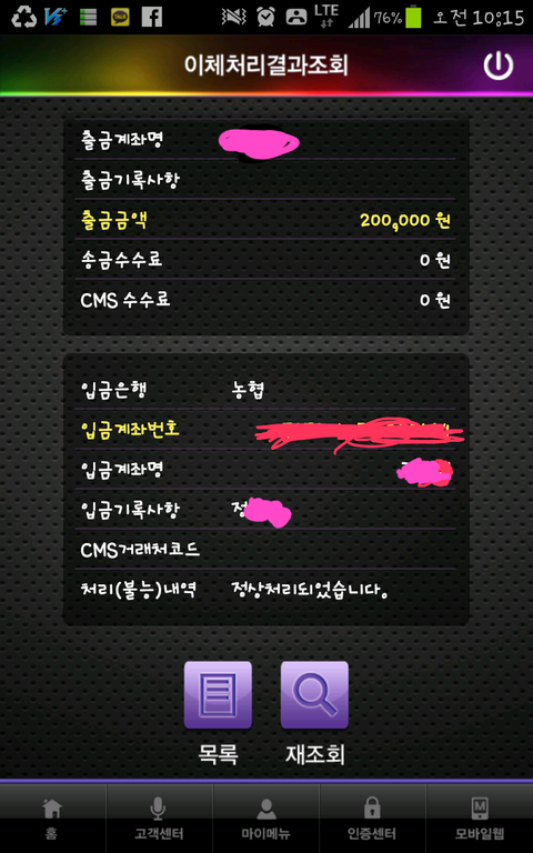 아무생각없이 폰뱅킹으로 이체결과내역조회를 해서