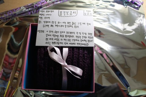보라색 목도리와 어울리는 보라색 포장지로 이쁘게 포장하고 마무리!!!